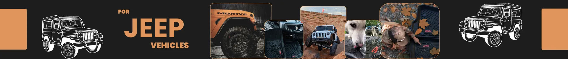 Designed exclusively for Jeep models like the Wrangler, Grand Cherokee, and Gladiator, our 3W floor mats and cargo liners are built to endure. Experience the ultimate fit and unmatched all-weather protection that seamlessly integrates with your Jeep's tough engineering. Whether tackling tough terrain or navigating city streets, ensure your Jeep's interior remains pristine with our durable and stylish solutions.