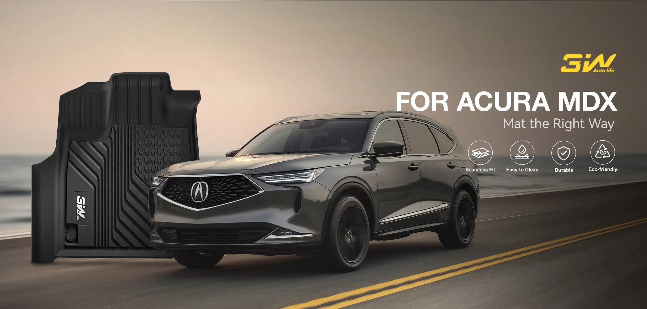 Anti-Slip Design and Easy to Clean: The anti-slip surface design keeps the 3W Acura MDX floor mats securely in place, offering better stability than OEM hooks and fasteners, especially in wet conditions. When it comes to cleaning, these mats are low-maintenance; simply use a hose or a damp towel to remove any accumulated dust, dirt, or sand.