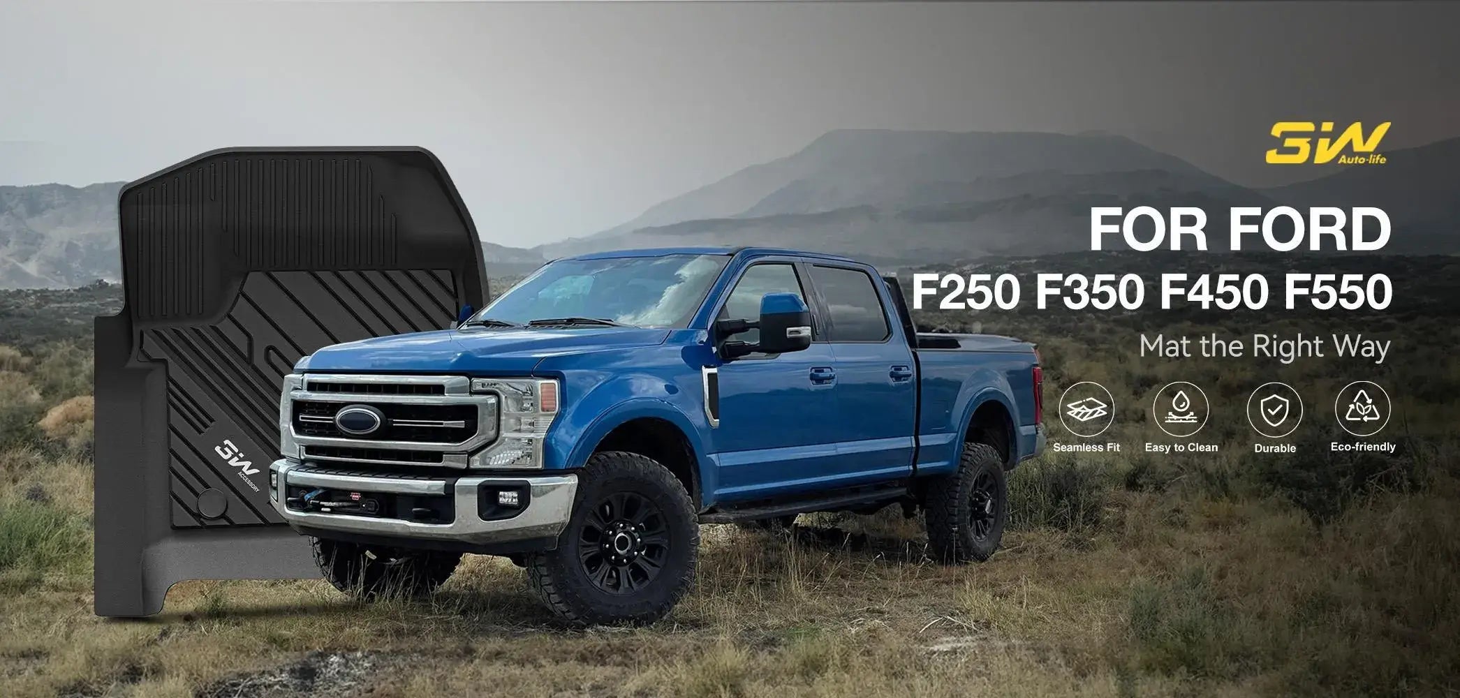These mats protect your carpet from rain, slush, snow, and mud. They ensure your vehicle is safeguarded during both winter and summer. Our 2023 F250 floor mats withstand the toughest conditions, making them the best for F250 trucks.