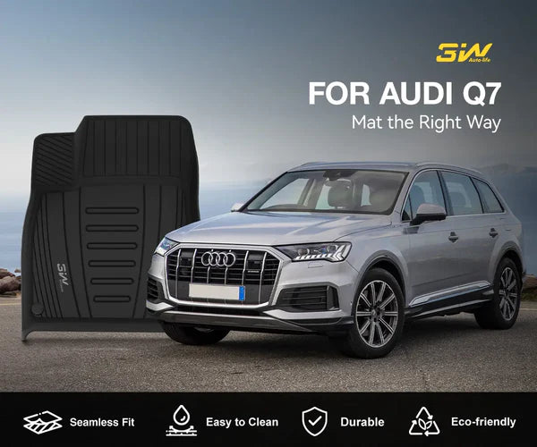 PERFECT FIT: Compatible with Audi: Our 3W floor mats are designed to provide a perfect fit for Audi Q7 2017–2025 and Q8 2019–2024 models. They include 1st and 2nd row floor liners with a custom fit design, offering maximum coverage and protection for your car's carpet.