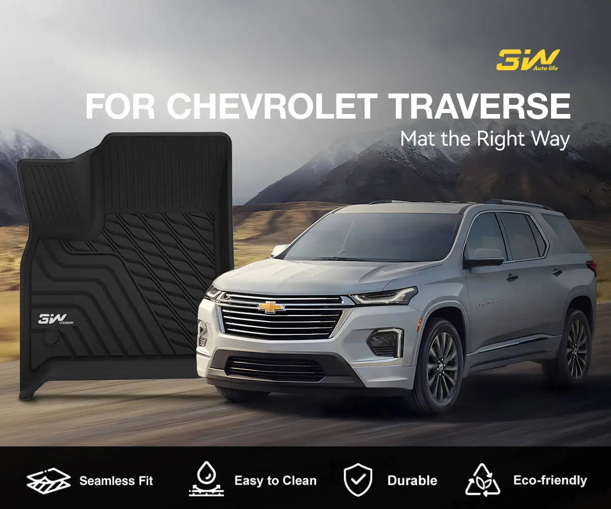 EXACT FIT FOR CHEVROLET TRAVERSE 2018-2023: Experience a flawless fit with these custom-designed floor mats that cover every inch of your Chevrolet Traverse's flooring from edge to edge. Crafted from comfortable yet robust material, these car carpets offer unmatched strength, resilience, durability, and elasticity, suitable for the 2018-2023 Chevrolet Traverse.