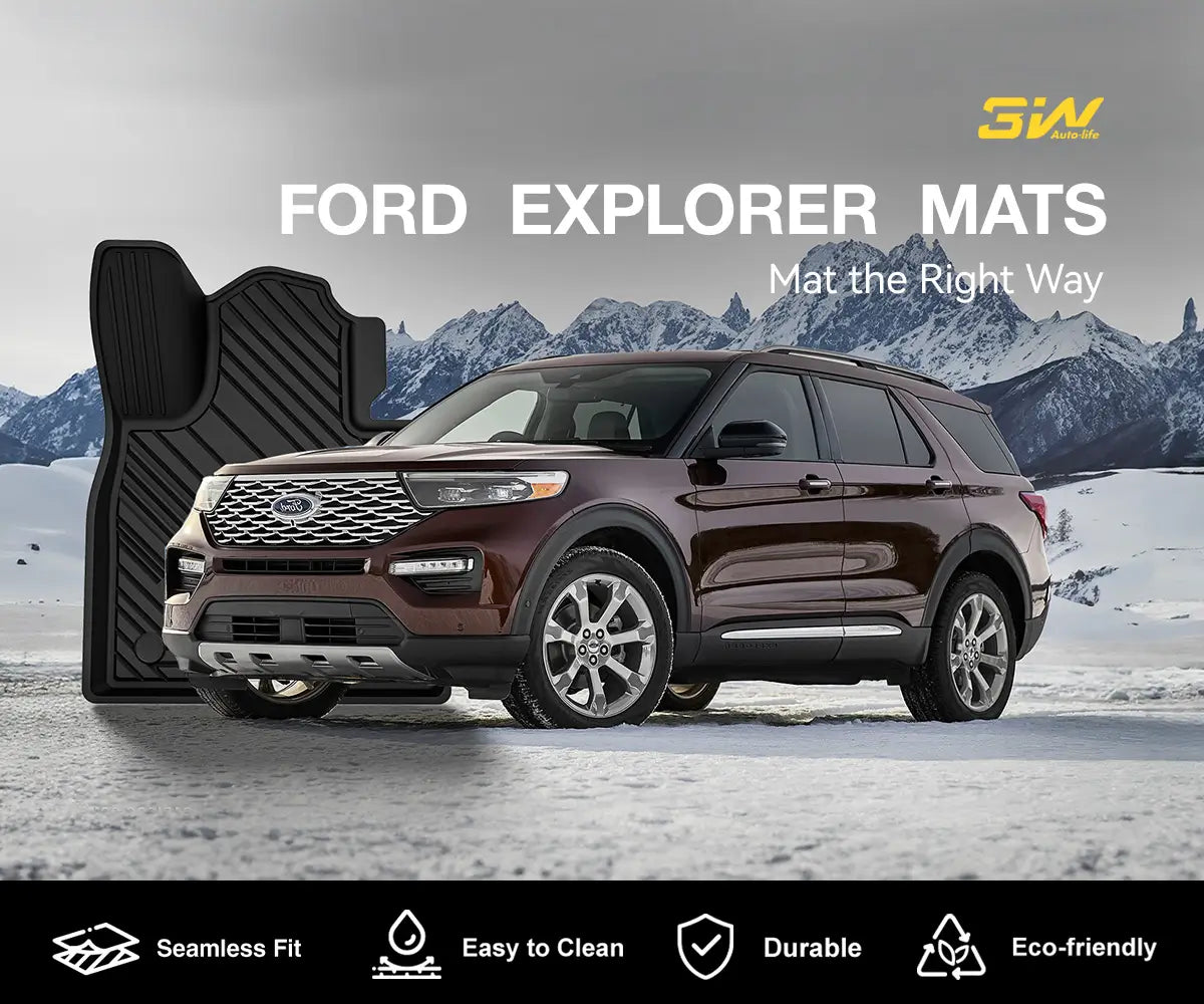 All-Weather Durability: These robust Ford Explorer floor mats are easy to install and suitable for all weather conditions. They are stain-resistant, waterproof, and anti-slip, effectively protecting your vehicle's carpet from rain, slush, snow, and mud throughout the seasons.