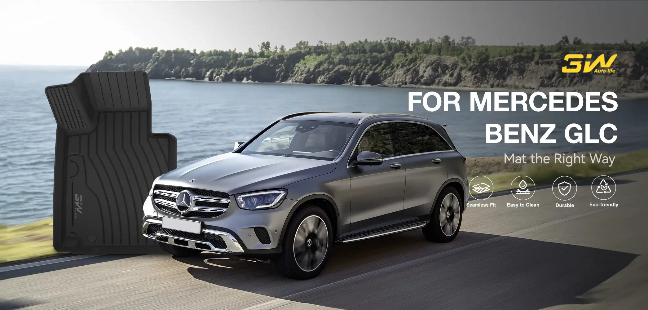 3W Mercedes-Benz GLC 2016-2022 Custom Floor Mats / Trunk Mat TPE Material & All-Weather Protection