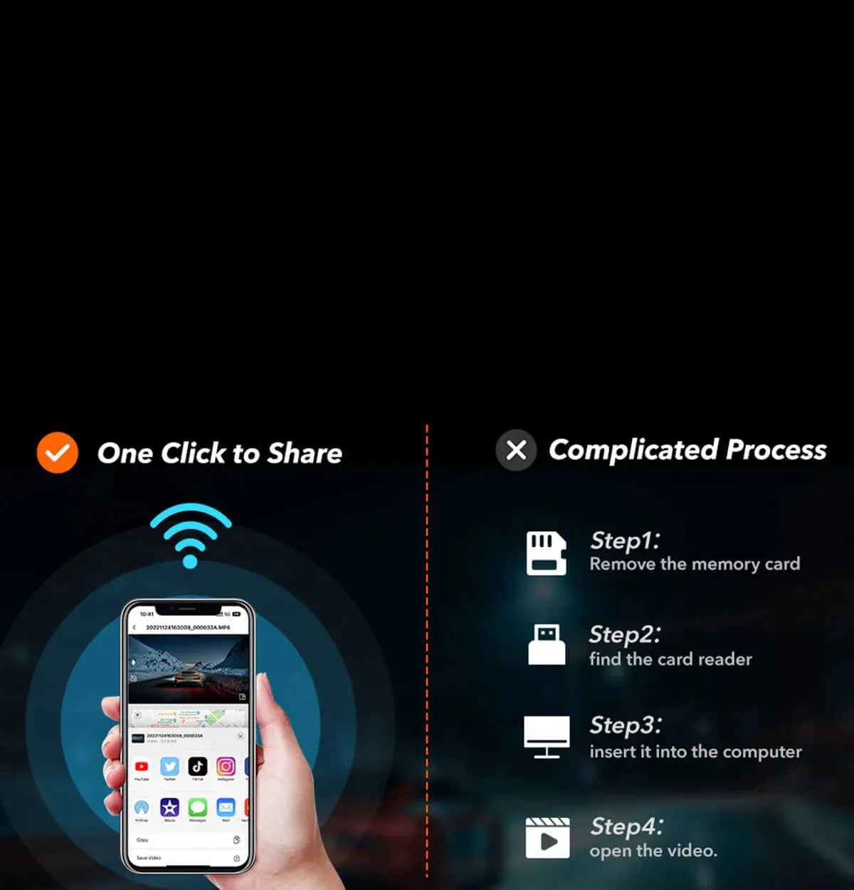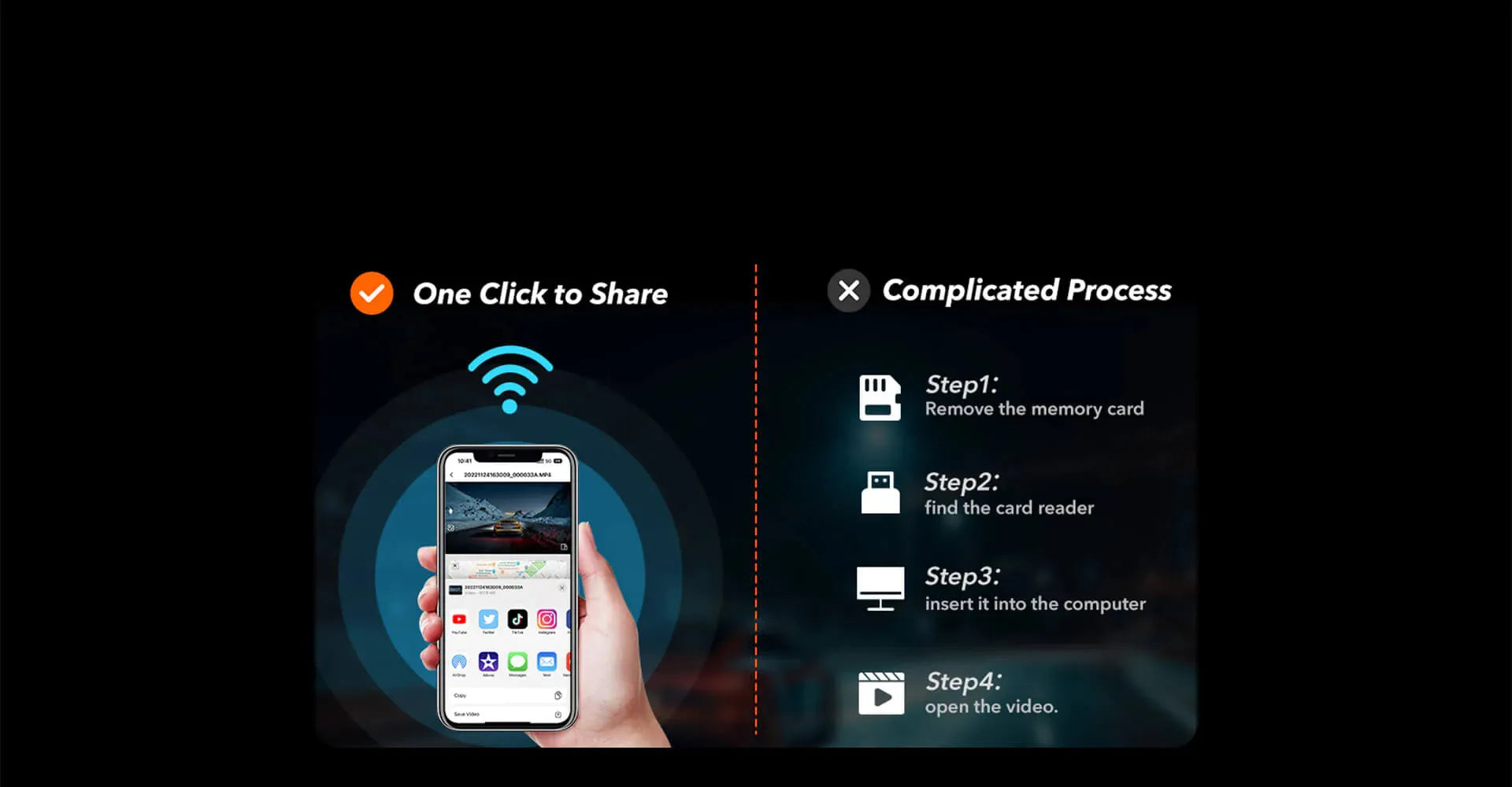 Wolfbox G840H mirror camera with a 12-inch wide mirror is an excellent car dashcam for recording your journey.