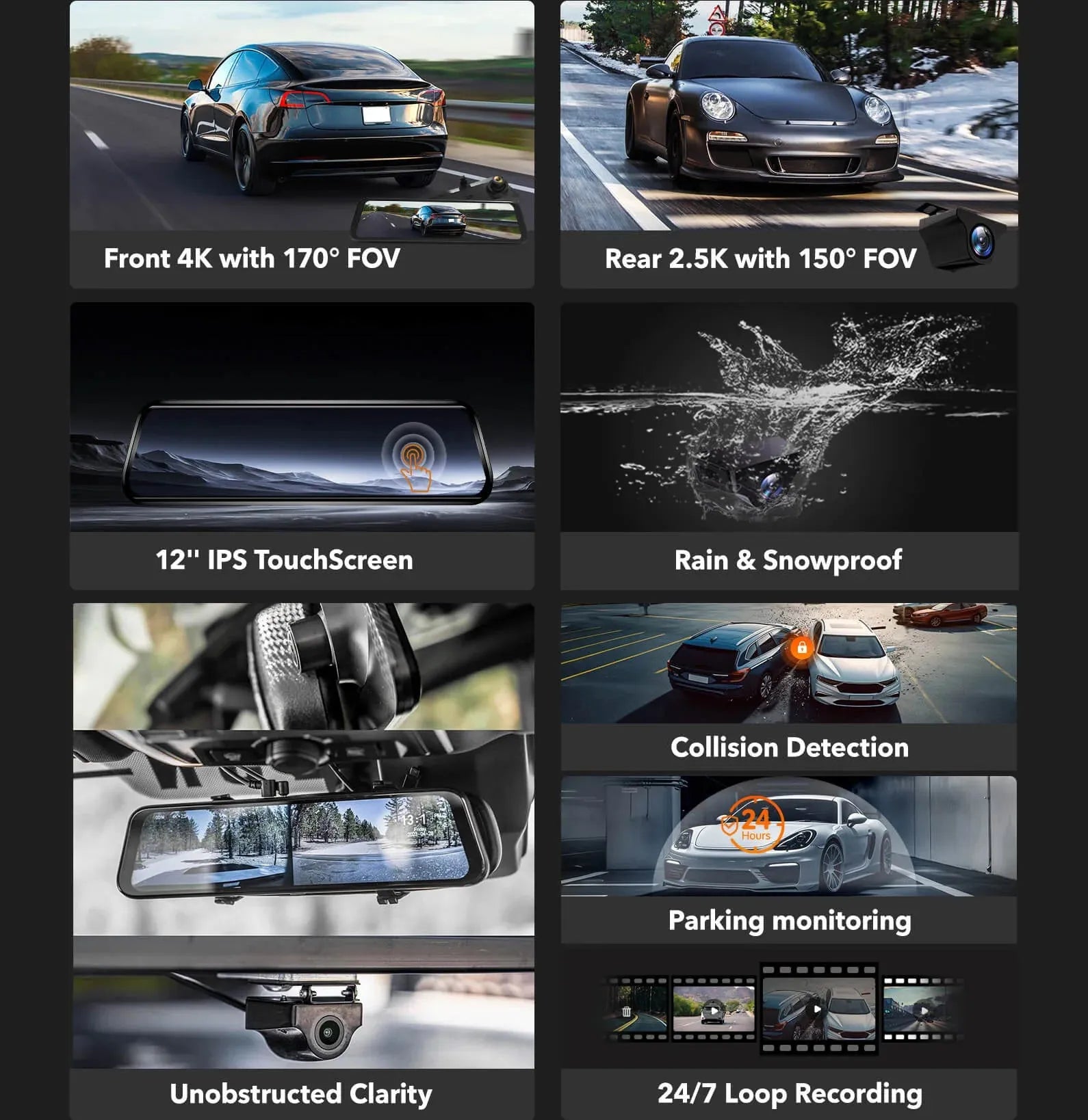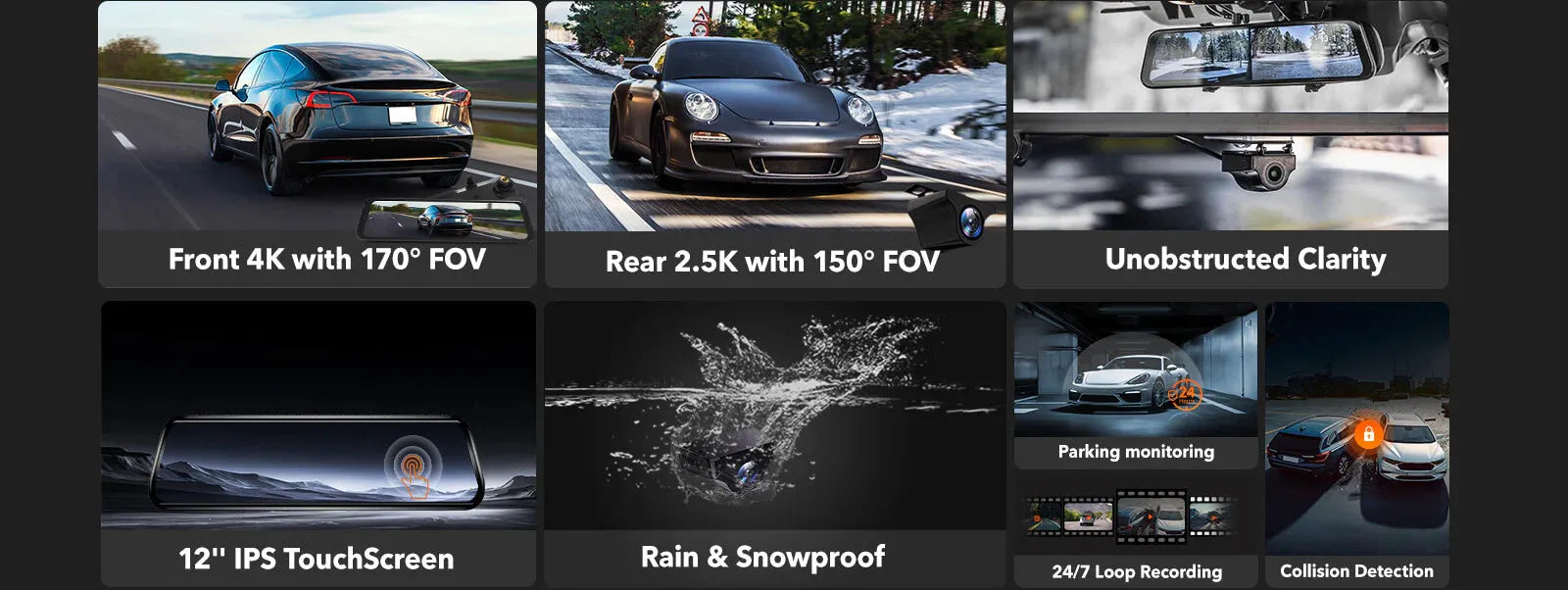 - 4K+2.5K Dual ClarityCapture every detail on the road with crystal-clear 4K front and 2.5K rear cameras, ensuring your travels and any incidents are recorded with high fidelity.